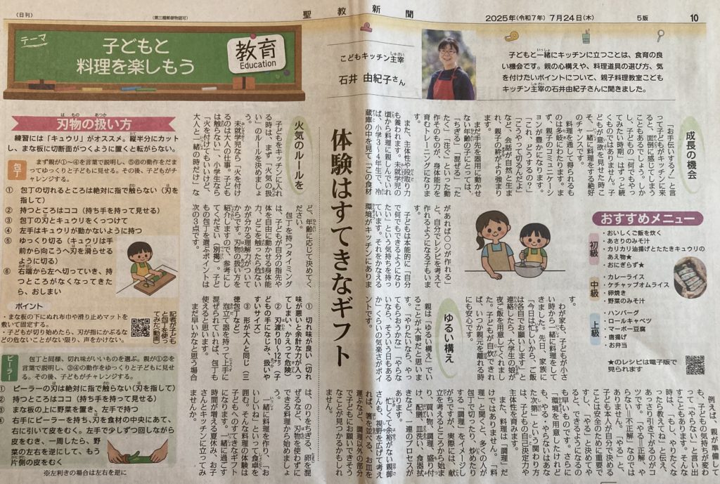 >掲載紙面:子どもの自立を育む、親子料理教室を